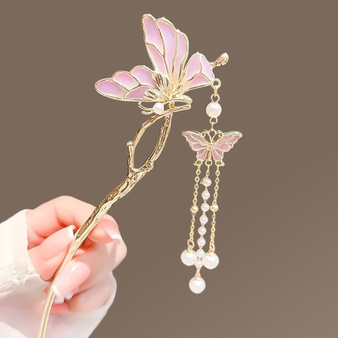 2024 nouveauté papillon perle gland métal bâtons de cheveux