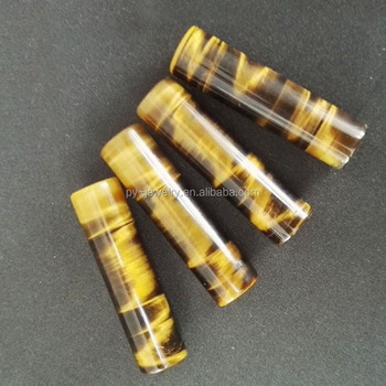 Batu Mata Kucing Mata Harimau Kualitas AAA Bentuk Bambu Bulat Liontin Panjang